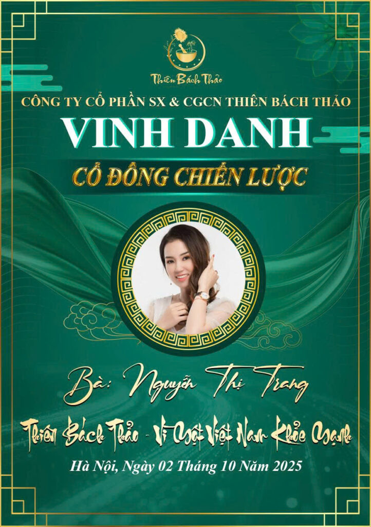 Trên con đường xây dựng và phát triển hệ thống, mỗi bước đi của chiến binh Thiên Bách Thảo đều để lại dấu ấn đặc biệt. Hôm nay, chúng tôi tự hào vinh danh Thủ lĩnh Nguyễn Thị Trang – người chính thức trở thành Cổ Đông Chiến Lược Thiên Bách Thảo.