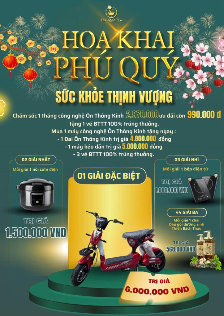 Hoa Khai Phú Quý là chương trình tri ân quy mô toàn quốc, được Thiên Bách Thảo chính thức triển khai tại hệ thống Câu lạc bộ Chăm sóc Sức khỏe Chủ động, dành riêng cho khách hàng sử dụng máy Ôn Thông Kinh.