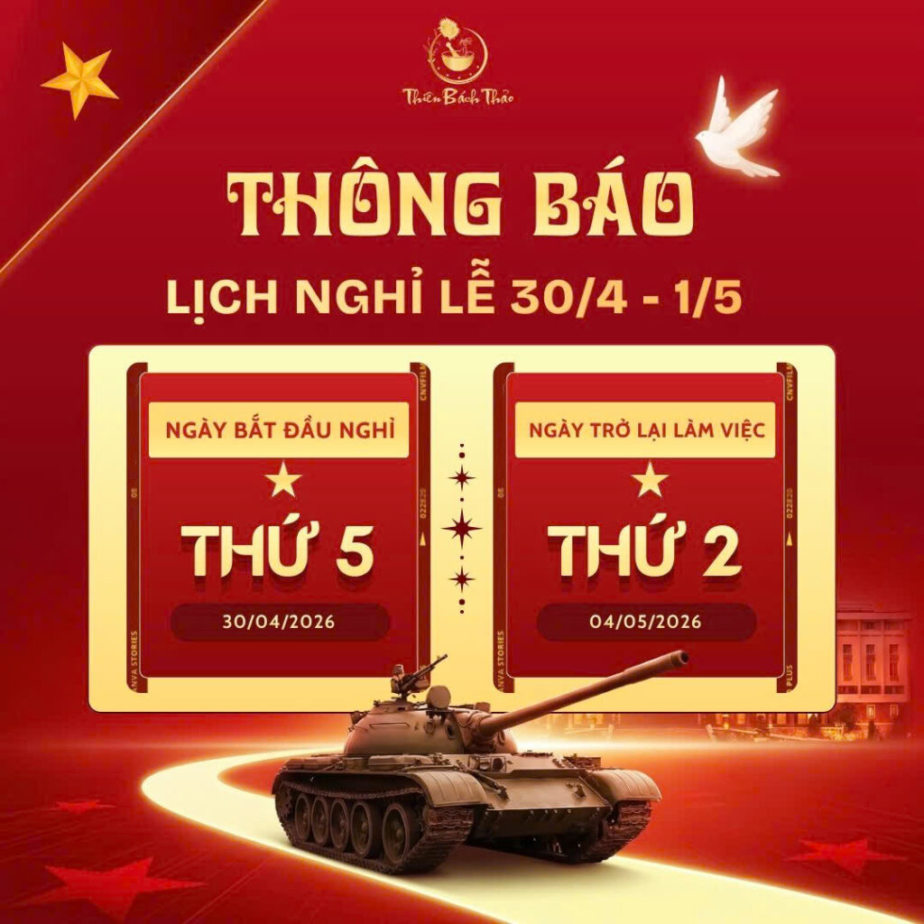 🎉 Thiên Bách Thảo kính chúc Quý đối tác, Quý khách hàng cùng gia đình có một kỳ nghỉ lễ: