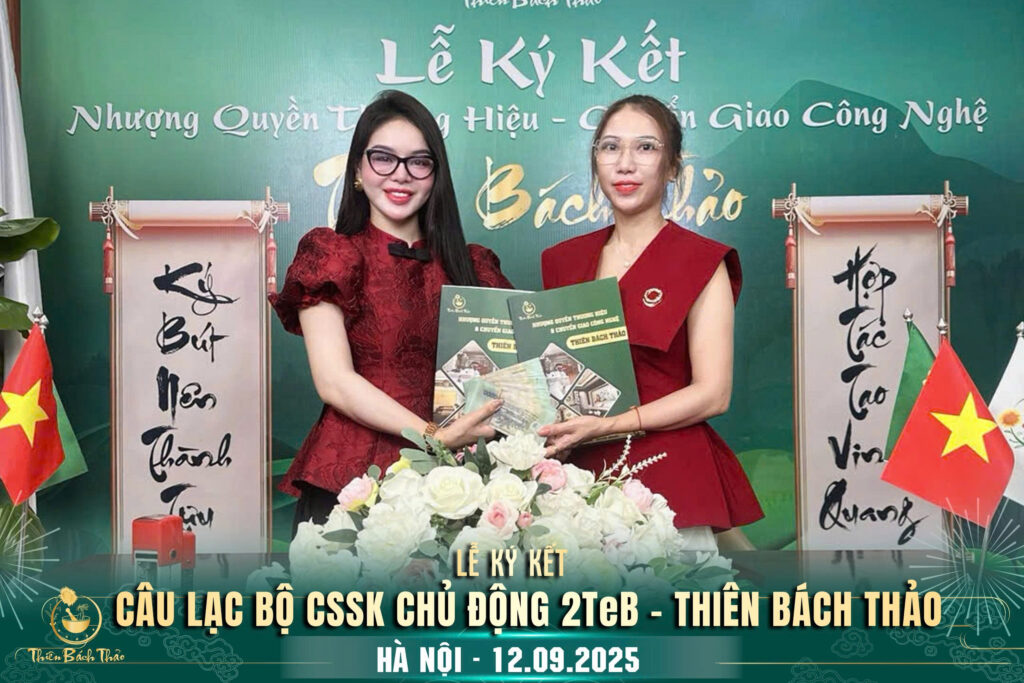 Ngày 12/09/2025, Thiên Bách Thảo đã chính thức ghi thêm một cột mốc lịch sử quan trọng khi tổ chức lễ ký kết CLB Chăm sóc Sức khỏe Chủ động Công nghệ 2TeB tại Hoàng Liệt, Hoàng Mai, Hà Nội. Sự kiện đánh dấu sự hợp tác cùng chị Trần Thanh Nga – Diamond xuất sắc của hệ thống, mở ra hành trình mới trong việc lan tỏa mô hình chăm sóc sức khỏe chủ động, dưỡng sinh công nghệ 2TeB đến gần hơn với cộng đồng Thủ đô.