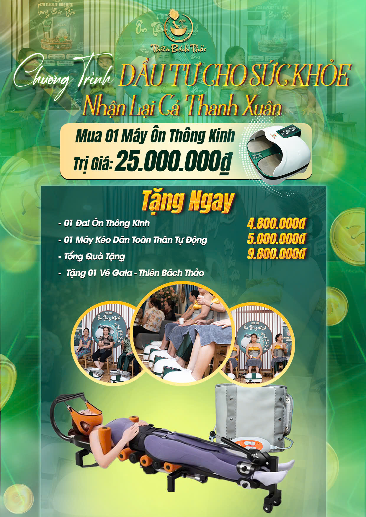 🌿 Máy Ôn Thông Kinh – sản phẩm trị liệu năng lượng từ Thiên Bách Thảo – giúp khai thông khí huyết, cân bằng năng lượng, cải thiện giấc ngủ, thư giãn toàn thân và phục hồi thể trạng tự nhiên.
