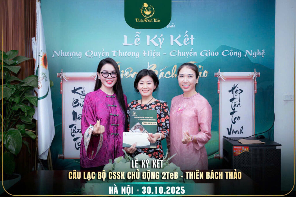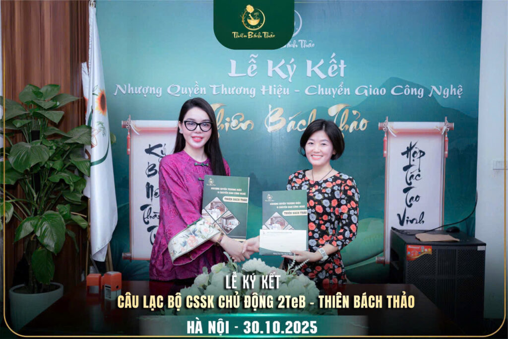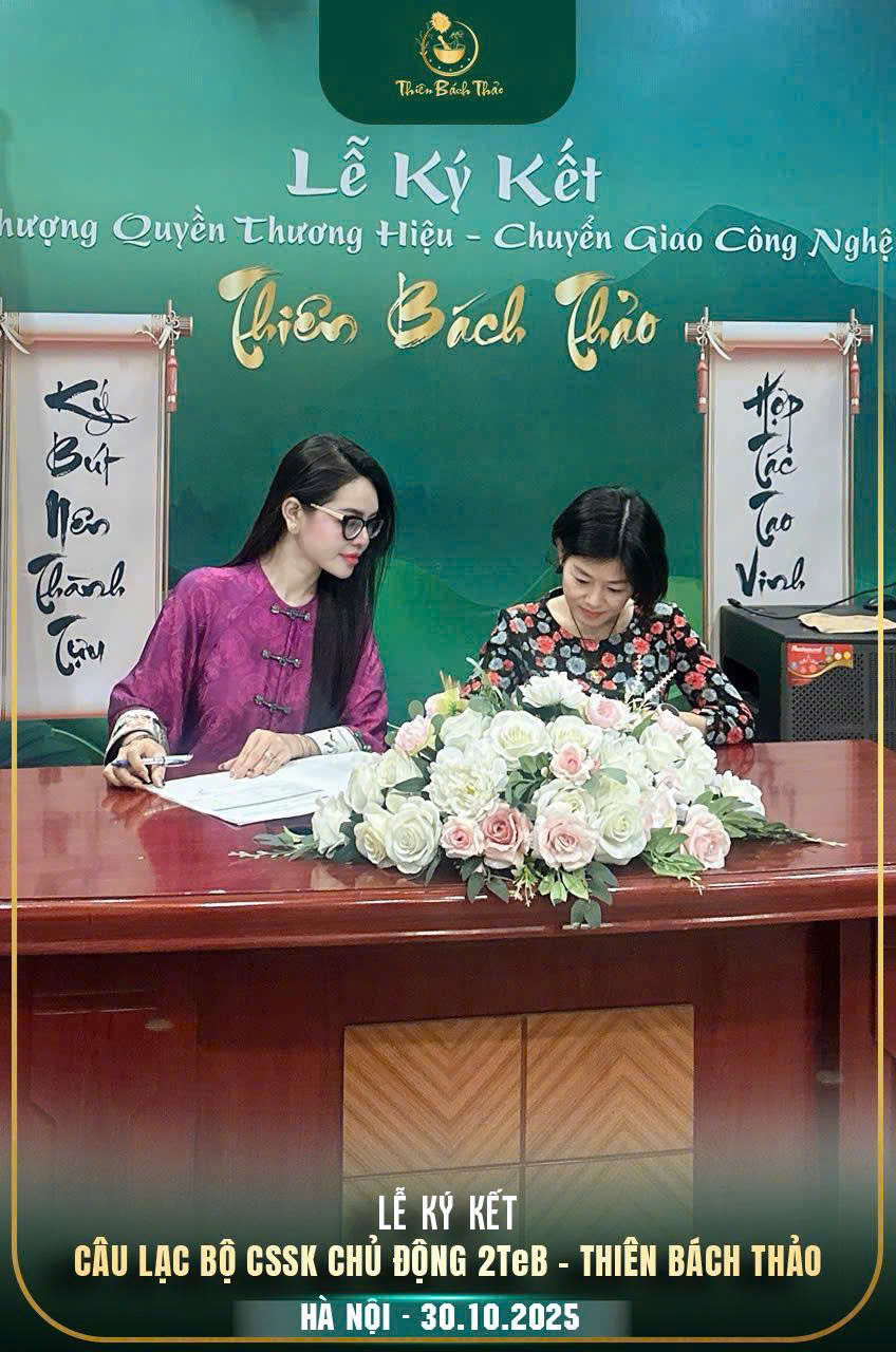 Chiều ngày 30/10/2025, tại trụ sở Thiên Bách Thảo (Hà Đông, Hà Nội) đã diễn ra Lễ ký kết hợp tác chính thức giữa Thiên Bách Thảo và chị Trịnh Hoa – đại diện CLB Chăm Sóc Sức Khỏe Chủ Động Công Nghệ 2TeB Linh Đàm.